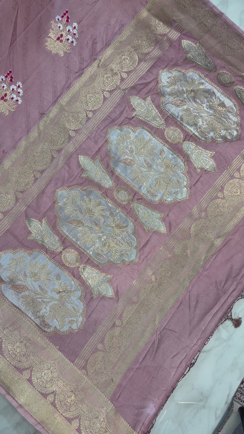 Elevate your wardrobe with the timeless elegance of this Pure Mushroo Silk Banarasi Handloom Saree, a perfect blend of heritage and luxury.