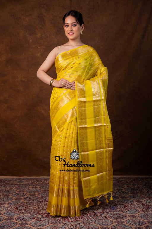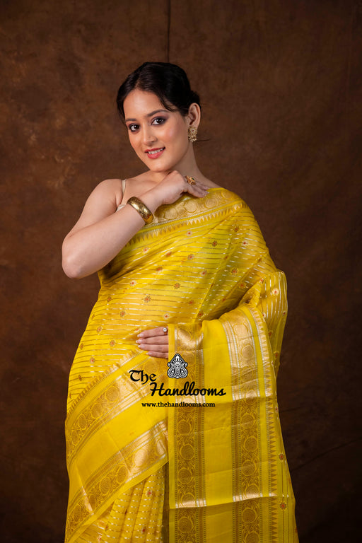 Yellow Pure Kora Tissue Handloom Banarasi Saree