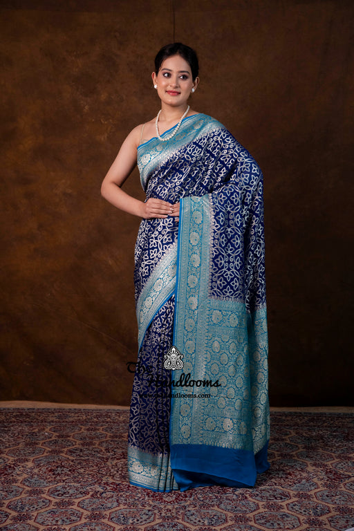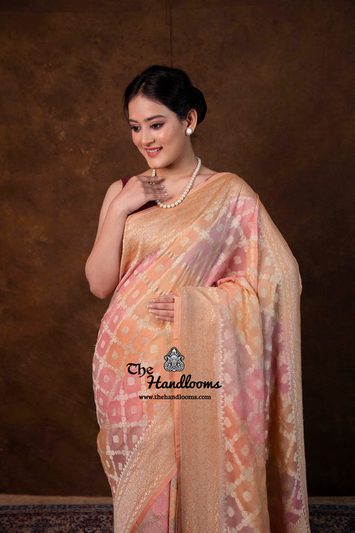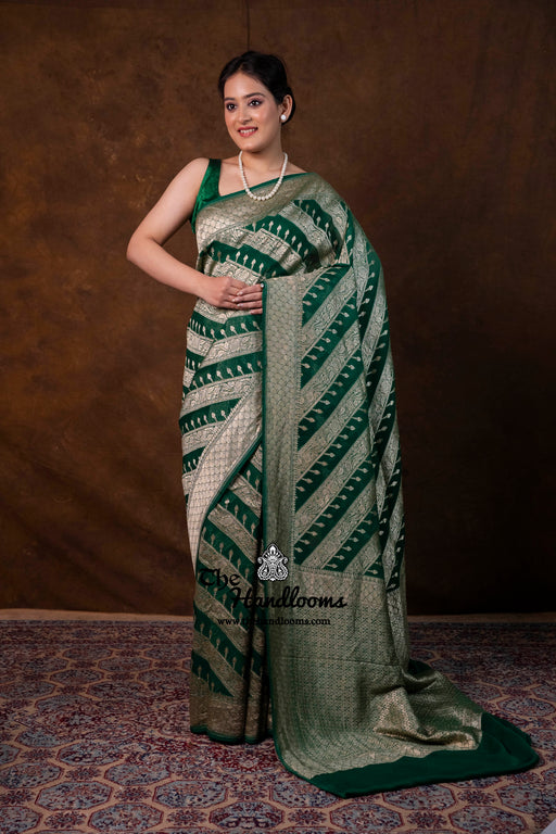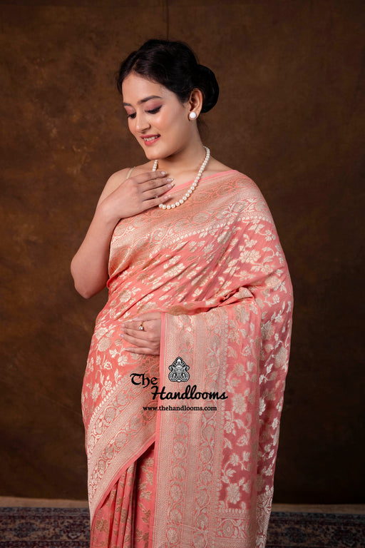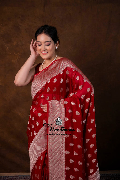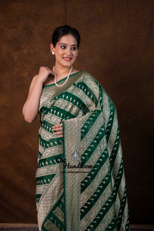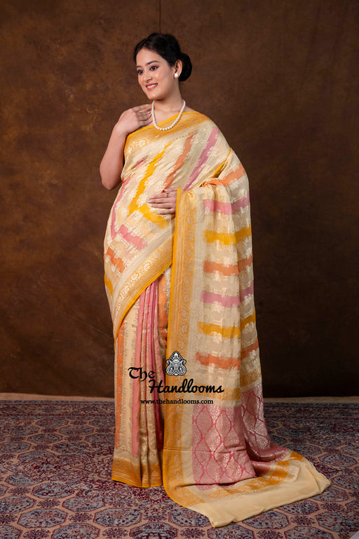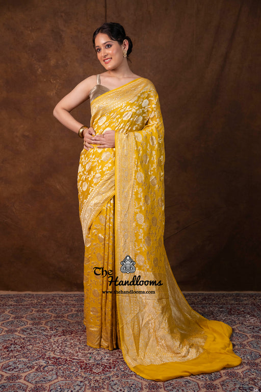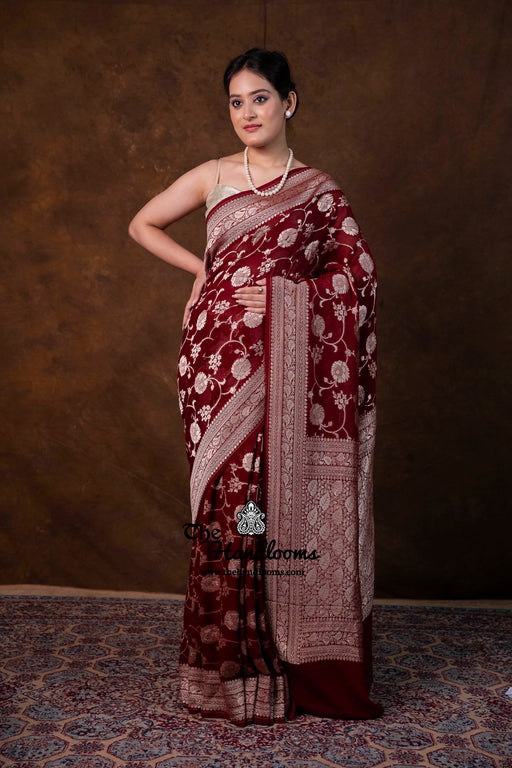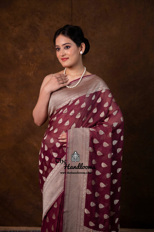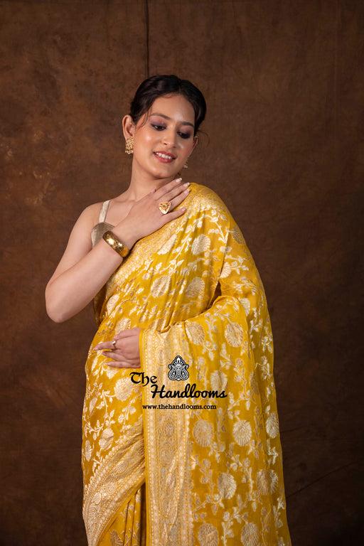 View full detailsExperience the timeless elegance of authentic Banarasi craftsmanship with this Khaddi Georgette handloom saree, distinguished by its exquisite Wa...