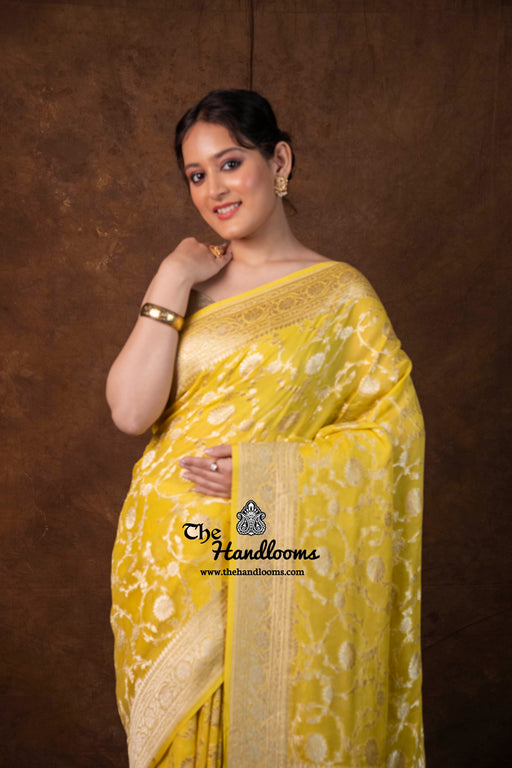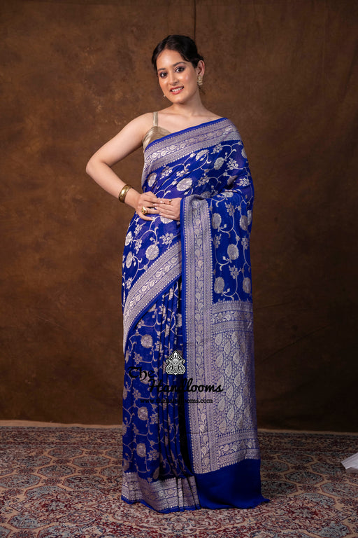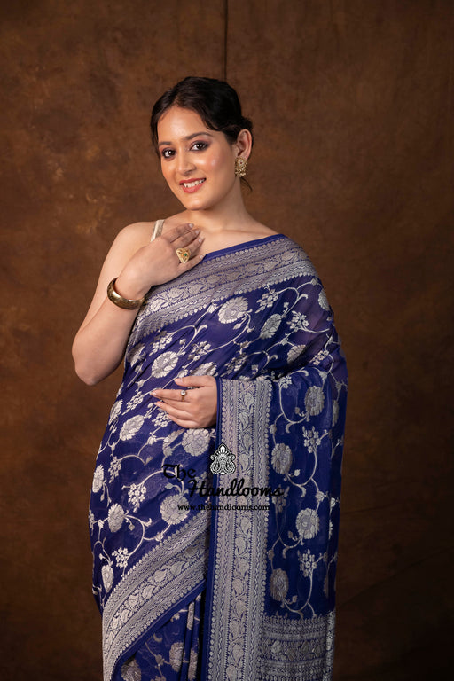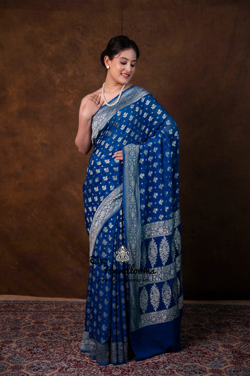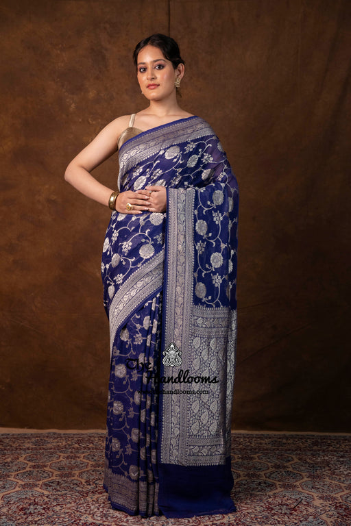 Discover our Khaddi Georgette Banarasi sarees adorned with shimmering water zari—handwoven with delicate motifs and lightweight drape. Perfect for weddings and festive celebrations, each piece blends luxurious elegance with rustic charm.”