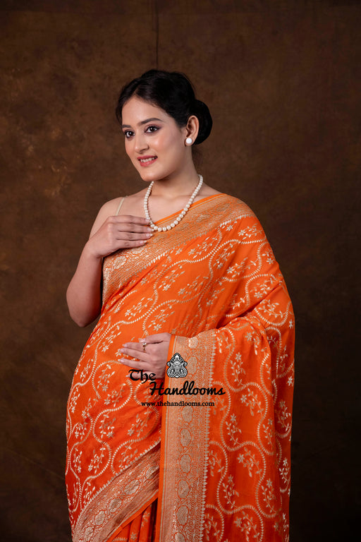 View full detailsColor- Gajri Technique- An enduring Handloom weave. The elaborate and laborious technique involves hand-weaving each motif separately. It takes lo...
