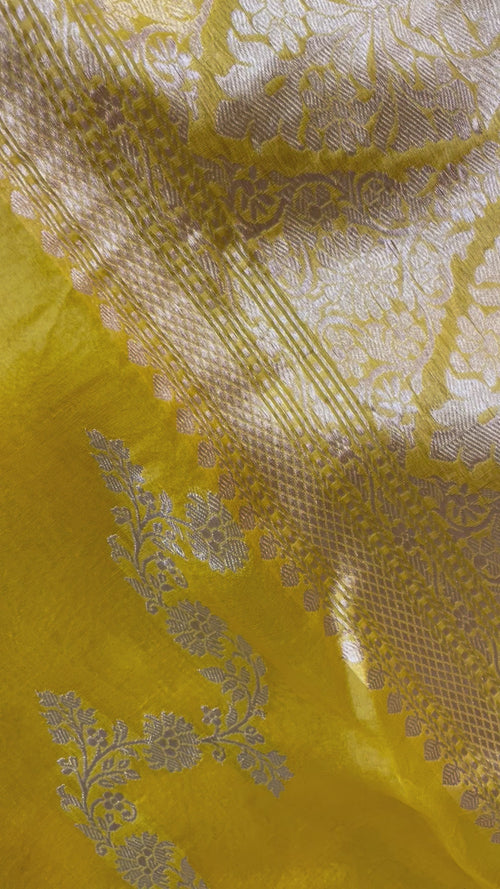 Mango Yellow Pure Kora Handloom Banarasi Saree