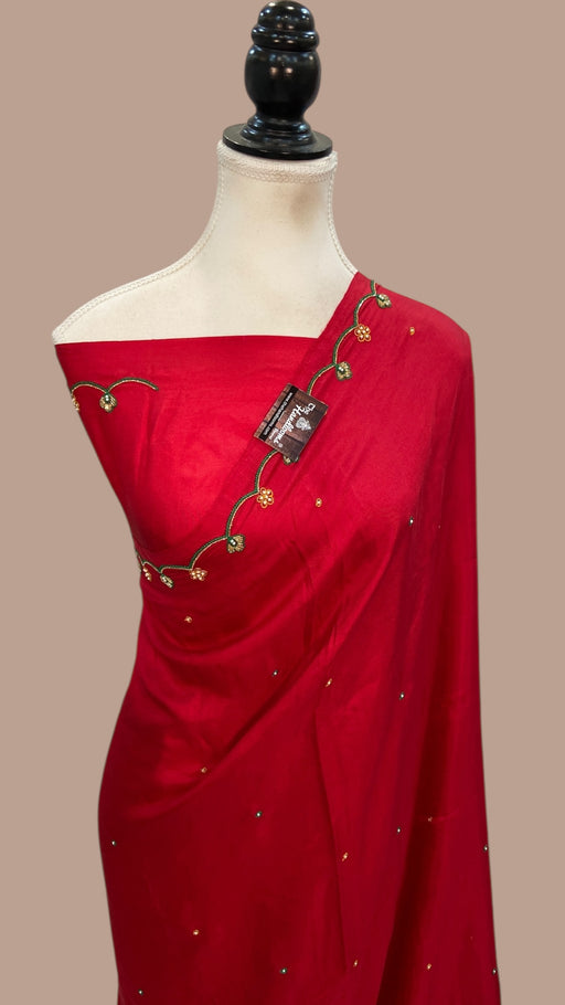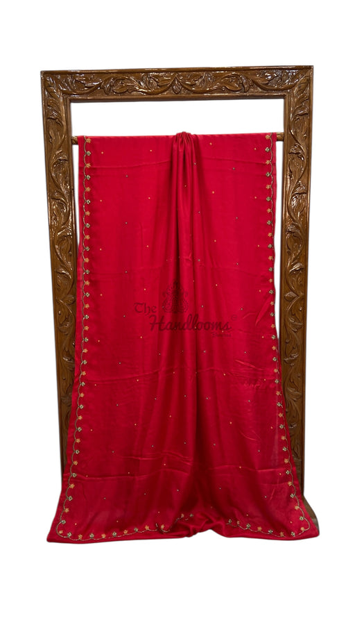 View full detailsElevate your style with our exquisite Red Khaddi Georgette Handloom Banarasi Saree. Made with intricate handwork, this saree features Gota Patti,...