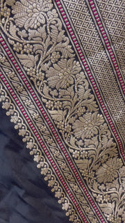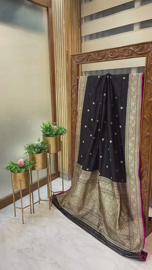 Black Pure Katan Silk Banarasi Handloom Saree - All over Kadua motifs With Meenakari