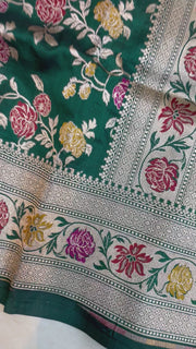 Green Pure Katan Silk Banarasi Handloom Saree - All over Jaal work with Meenakari