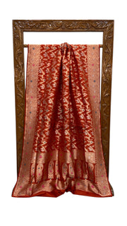 Pure Katan Silk Banarasi Handloom Saree - All over Jaal Work With Meenakari