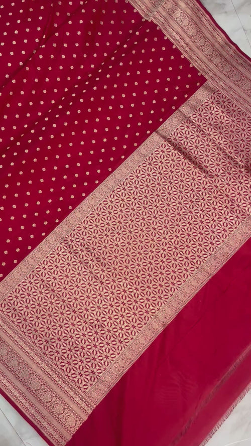 Red Pure Katan Silk Banarasi Handloom Saree - All Over Motifs