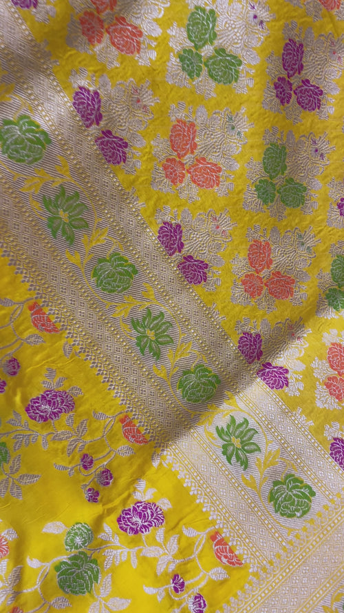 Pure Katan Silk Banarasi Handloom Saree - All over Jaal work - With Meenakari