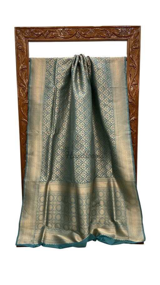 Turquoise Pure Katan Silk Banarasi Handloom Saree - Tanchui Brocade