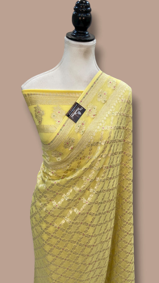 Khaddi Georgette Handloom Banarasi Saree - All over Jaal Work with meenakari