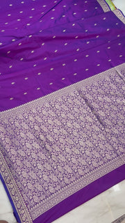 • Speciality - The glorious outline of kadua border lovingly handwoven on a base of resplendent silk in Sona or Gold zari kadua motifs. Incredible in its details and a mirror to the splendour of Banaras.