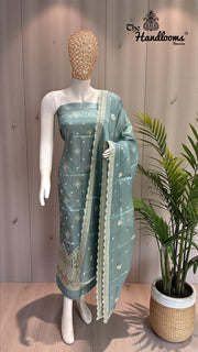 Pure Tussar Chikankari Handloom Banarasi Dress Material