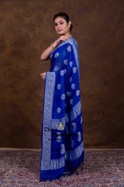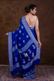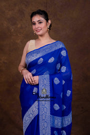 Royal Blue Pure Georgette Banarasi Handloom Saree