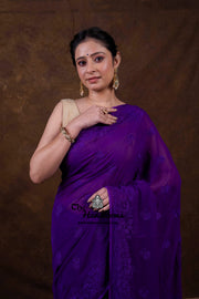 Pure Georgette Chikankari Handloom Banarasi Saree
