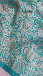 Turquoise Pure Katan Silk Banarasi Handloom Saree - Tanchui Brocade