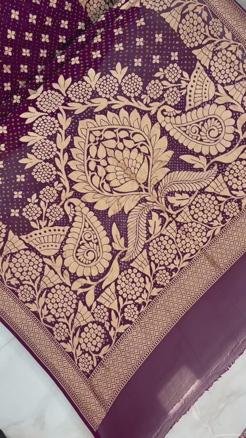 Pure Georgette Banarasi Bandhej Handloom Saree