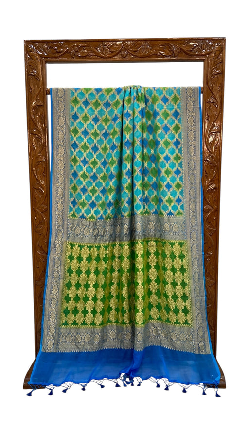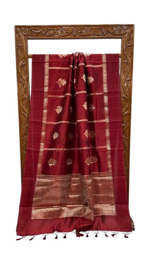 View full detailsThis handloom dupatta is made from pure kora tissue and features traditional Banarasi brocade patterns. Its exquisite craftsmanship and high-qualit...