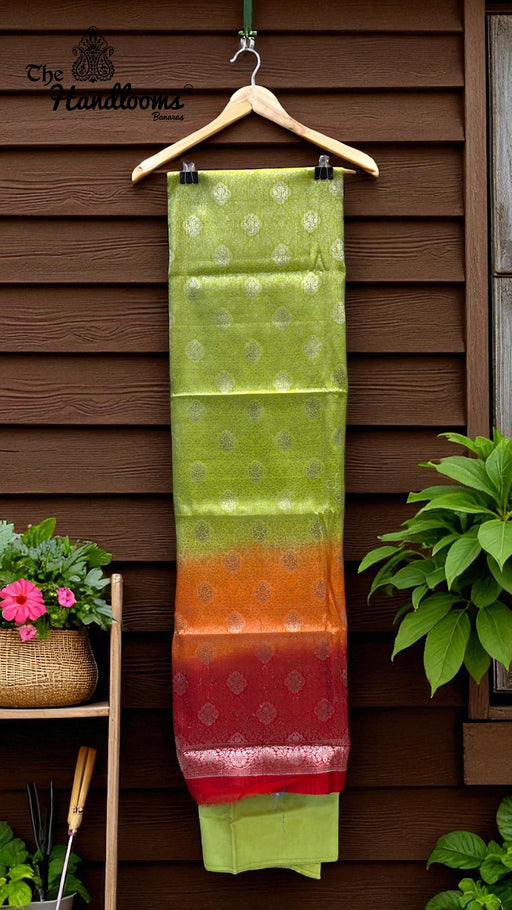 View full detailsElevate your wardrobe with this Tissue Silk Banarasi Saree, a refined blend of traditional craftsmanship and lightweight elegance. Woven with delic...