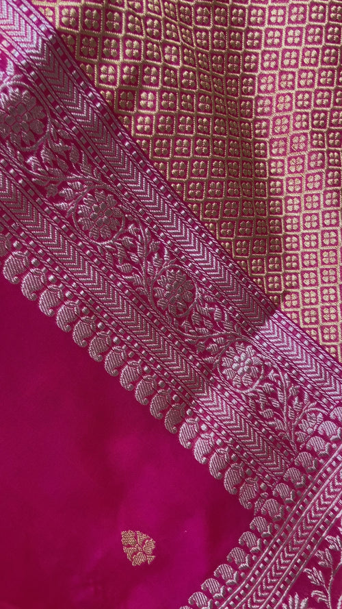 Hot Pink Pure Katan Silk Banarasi Handloom Saree - All over Kadua motifs