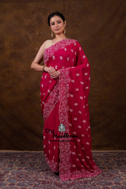 Pure Georgette Chikankari Handloom Banarasi Saree