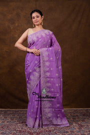 Pure Georgette Chikankari Handloom Banarasi Saree
