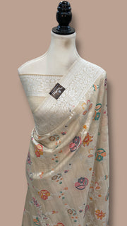 Tussar Georgette Handloom Banarasi Saree - All over Jaal Work with six color meenakari