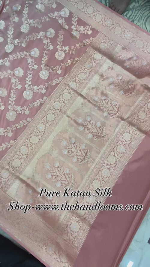 Onion Pink Pure Katan Silk Banarasi Handloom Saree - All over Sona Roopa Jaal Work