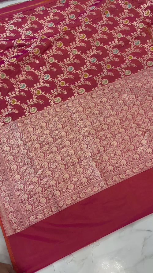 Pure Katan Silk Banarasi Handloom Saree - All over Jaal work With Meenakari