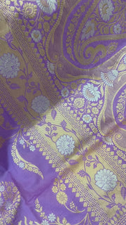 Lavender Pure Katan Silk Banarasi Handloom Saree - All over sona roopa Jaal work