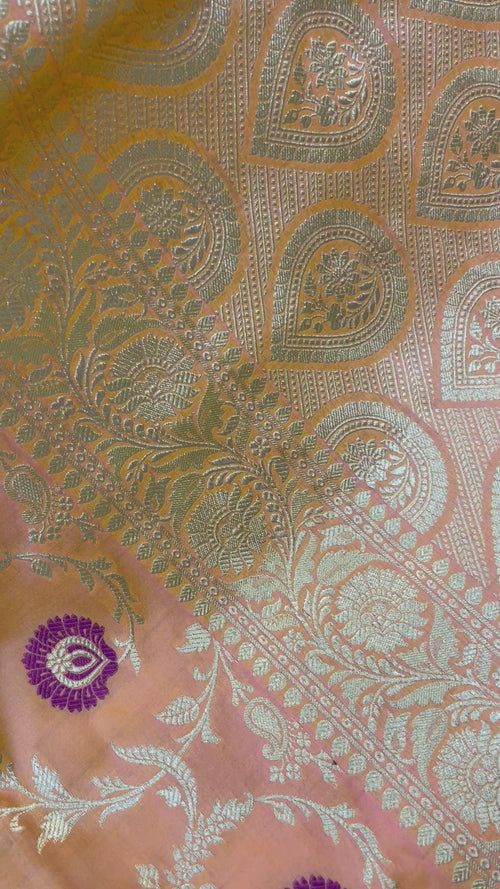 Pure Katan Silk Banarasi Handloom Saree - All over Jaal work with Meenakari