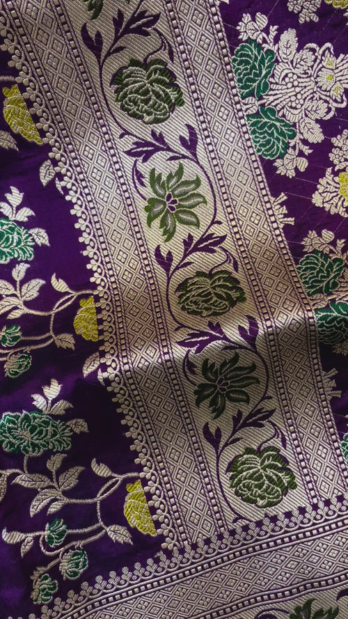Pure Katan Silk Banarasi Handloom Saree - All over Jaal work with Meenakari