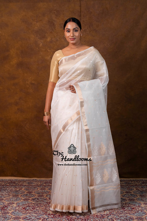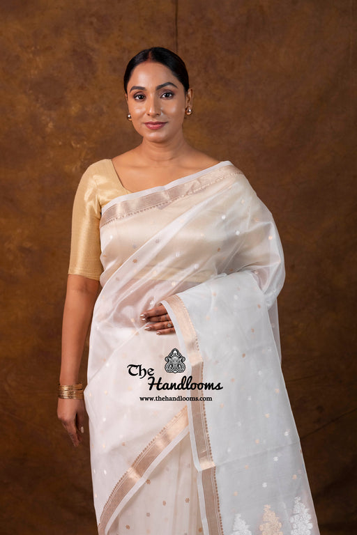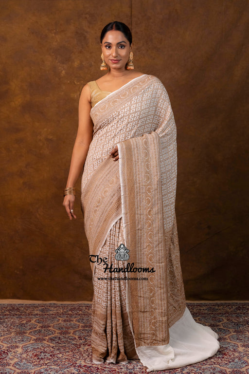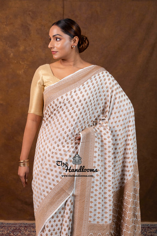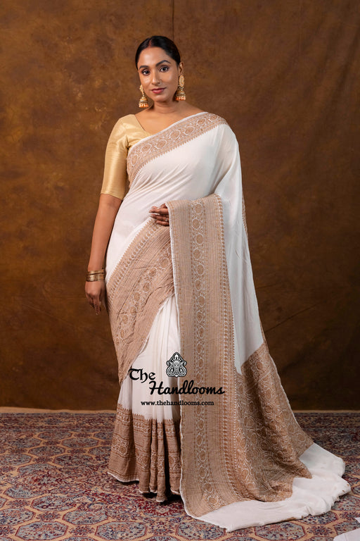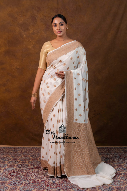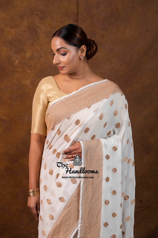 White Pure Moonga Georgette Handloom Banarasi Saree