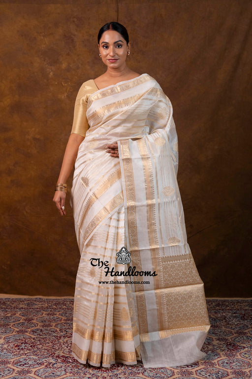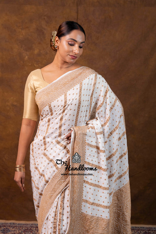 White Pure Khaddi Georgette Banarasi Saree - Gold zari