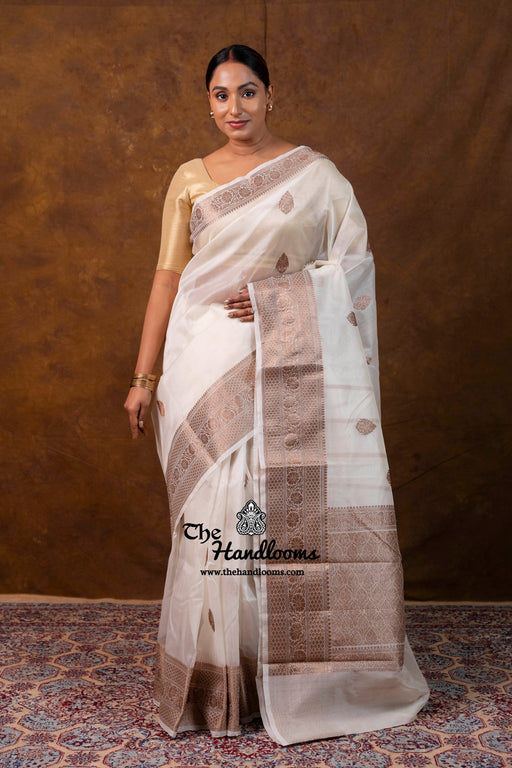 White Pure Kora Handloom Banarasi Saree - Sona Roopa Kadua motifs