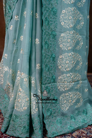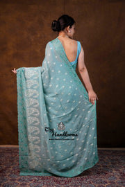 Pure Georgette Chikankari Handloom Banarasi Saree