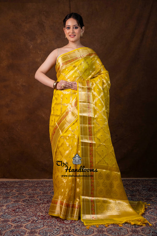 Color - A beautiful luminous shade of Yellow Technique - An enduring Kadwa weave. The elaborate and laborious Kadwa (Kadhua) technique invo...