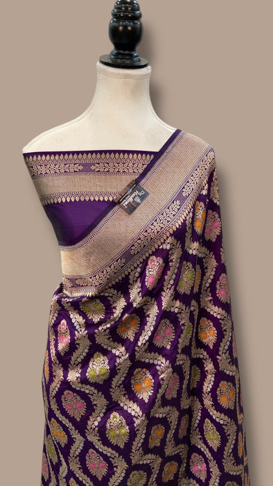 Pure Katan Silk Banarasi Handloom Saree - All over Jaal Work With Meenakari