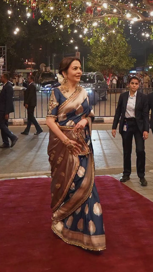 Nita Ambani Pure Katan Silk Banarasi Handloom Saree - All Over Boota With Zardosi Handwork