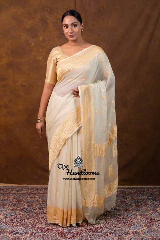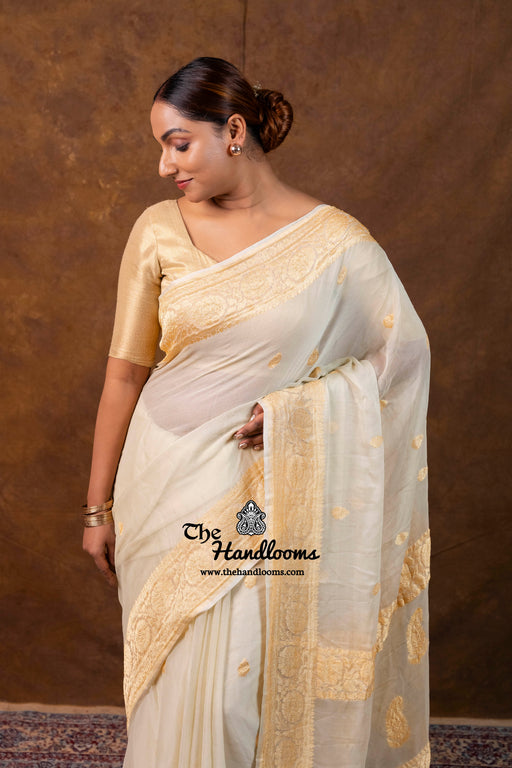 View full detailsExpertly woven using high-quality Khaddi Georgette material, this Banarasi saree exudes elegance and class. The intricate design showcases the f...