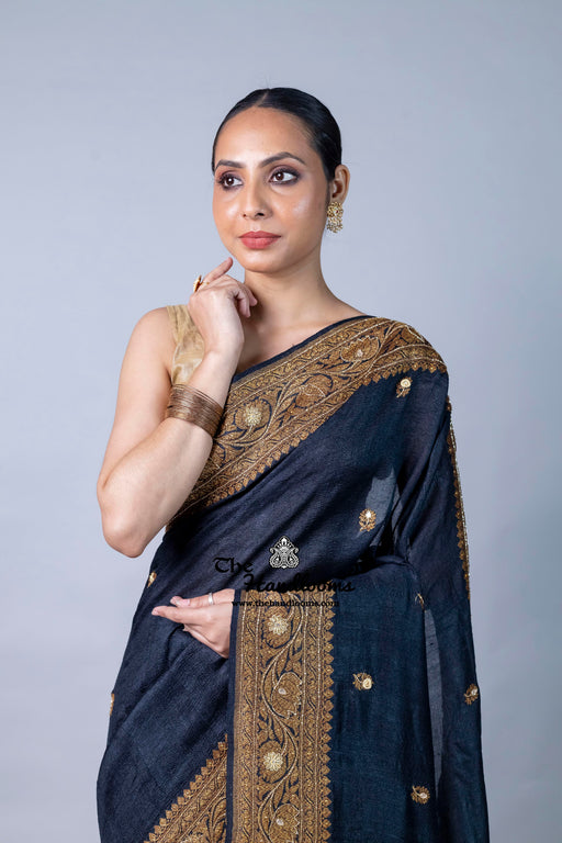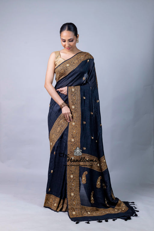 View full detailsCrafted from pure Tussar silk, this Banarasi handloom saree showcases exquisite water zari work that enhances its traditional elegance. Renowned fo...