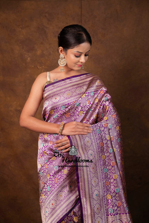 Regal Pure Katan Silk Banarasi Saree – Handwoven Tanchui Brocade With Meenakari Work