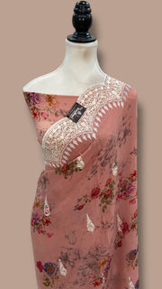 Pure Georgette Handloom Banarasi Saree - Digital Print With Chikankari