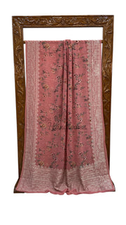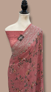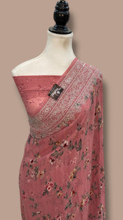 Pure Georgette Handloom Banarasi Saree - Digital Print With Chikankari