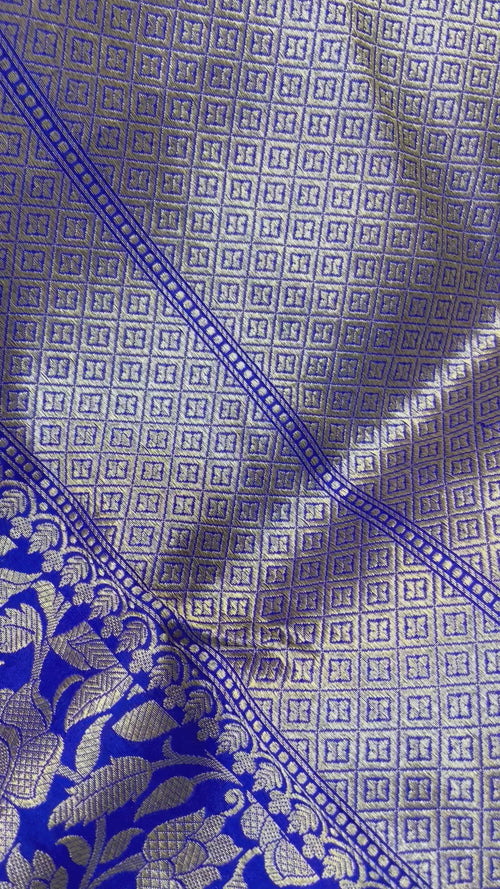 Royal Blue Pure Katan Silk Banarasi Handloom Saree - Tanchui Brocade