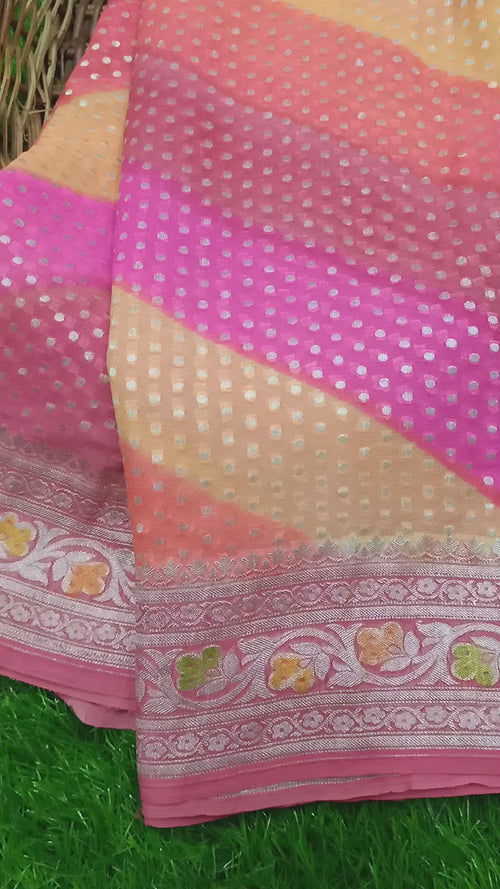 - Speciality - Elegant silver zari motifs woven in the exquisite kadwa weave, on a dainty palette. Enduring art from Banaras!