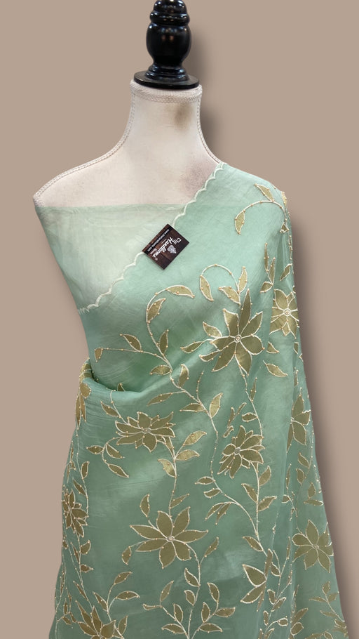View full detailsThis Pure Organza Handloom Banarasi Saree showcases exquisite handwork, merging traditional craftsmanship with delicate organza fabric. Its lightwe...