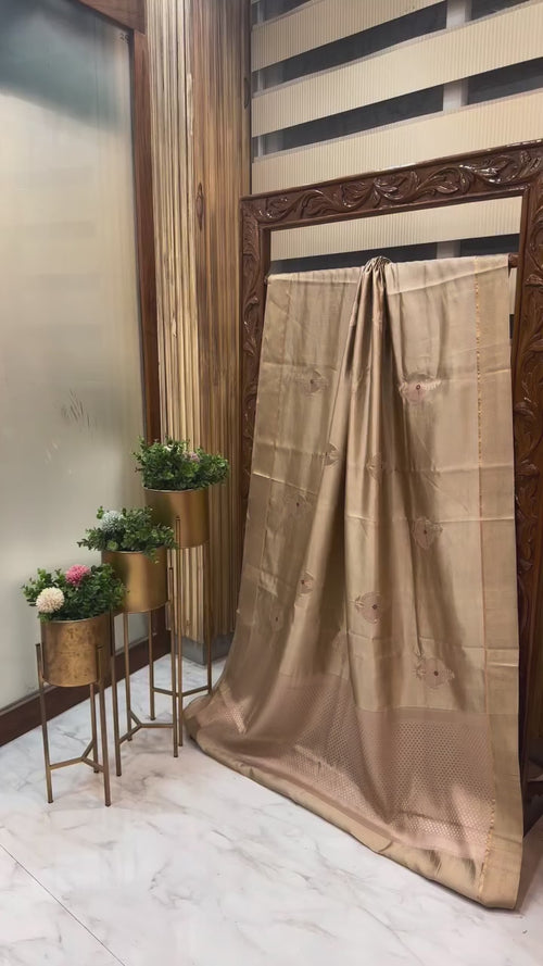 • Design: Traditional Banarasi handloom with intricate floral and paisley patterns