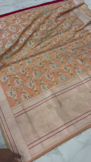 - Speciality - The glorious outline of kadua border lovingly handwoven on a base of resplendent silk in Sona or Gold zari kadua motifs. Incredible in its details and a mirror to the splendour of Banaras.