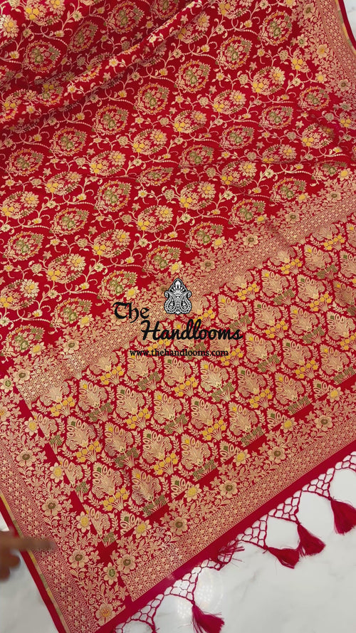 Pure Katan Silk Banarasi Handloom Saree - All over Jaal Work With Meenakari