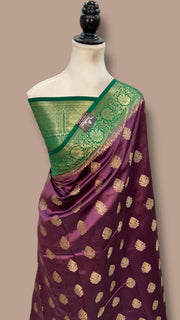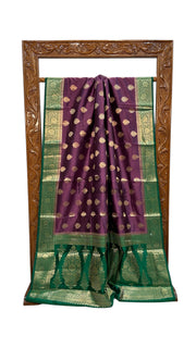 This Pure Dupion Silk Banarasi Saree is crafted with gold zari, designed to bring out the natural luster of the fabric, making it a luxurious choice for special occasions. The 'dupion' texture adds a unique subtle texture to the saree, giving it a timeless, classic look